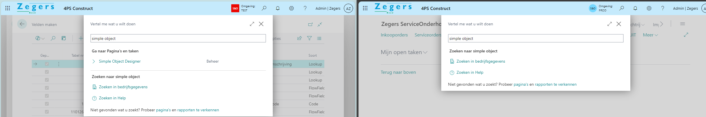 Here you can see the differences between left (PROD-environment in company ‘S&O’) vs. right (PROD-environment in company ‘Projecten’):